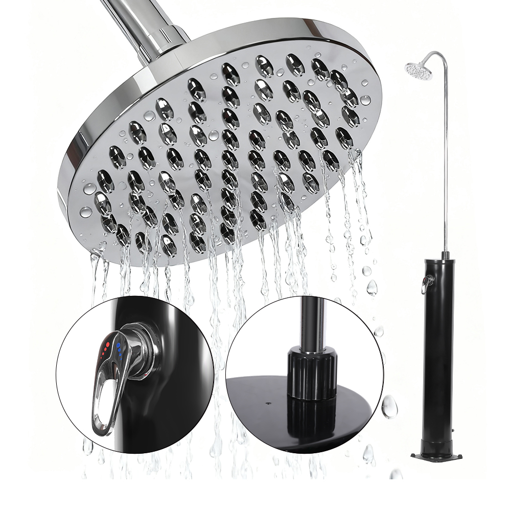 Voimakkaalle auringonvalolle altistuessaan 18/20 litran suihkuputken vesi voi luonnollisesti lämmetä noin 60°C ilman sähkön tarvetta, mikä tarjoaa kätevän ja ympäristöystävällisen suihkuratkaisun. Liitä vain tavallinen puutarhaletku täyttääksesi suihkuputken helposti. Tämä UV-kestävästä muovista valmistettu LY18L01-B 18L pyöreärunkoinen ulkopuutarha-uima-altaan aurinkosuihku on suunniteltu kestäväksi ja se voidaan helposti purkaa ja kuljettaa tarvittaessa. Sen kiinteä ruostumaton teräs, PVC, ABS, kupari ja metallipohja takaavat luotettavan vakauden ja pitävät yksikön tukevasti paikoillaan myös toistuvassa käytössä. Lisäksi siinä on tavallinen puutarhaletkuliitin nopeaa täyttöä varten ja tyhjennystulppa, joka mahdollistaa suihkuputken helpon tyhjennyksen, mikä tekee suihkun valmistelemisesta talvisäilytystä varten helposti.