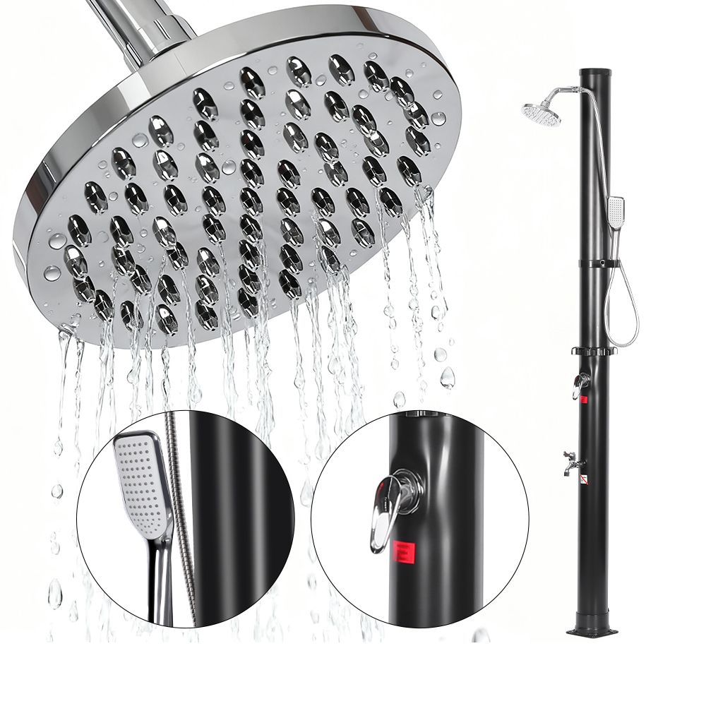 Tämä LY18L05-HB 18L kaksiosainen abs kromi suihkupää aurinkosuihku ulkopuutarhasuihku sisältää kätevän puutarhaletkuliitännän helpon täyttöä varten ja tyhjennystulpan, joka mahdollistaa nopean tyhjennyksen valmisteltaessa yksikköä talvisäilytystä varten. Kun suihkuputki on täytetty, vesi lämpenee luonnollisesti aurinkoenergialla, ja integroidun hanahanan avulla on helppo säätää vesi haluamaasi lämpötilaan mukavan suihkukokemuksen saamiseksi. Kaikki osat on kiinnitetty tiukasti ruuveilla kestävyyden varmistamiseksi, ja turvallisen toiminnan varmistamiseksi suihkun tulee olla kunnolla kiinnitetty maahan. Selkeät, monikieliset ohjeet opastavat sinua asennuksen ja käytön aikana, mikä tekee asennusprosessista yksinkertaisen ja luotettavan.