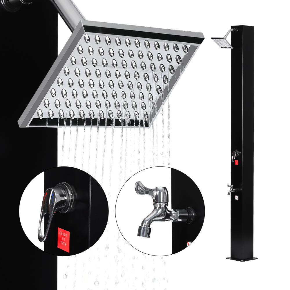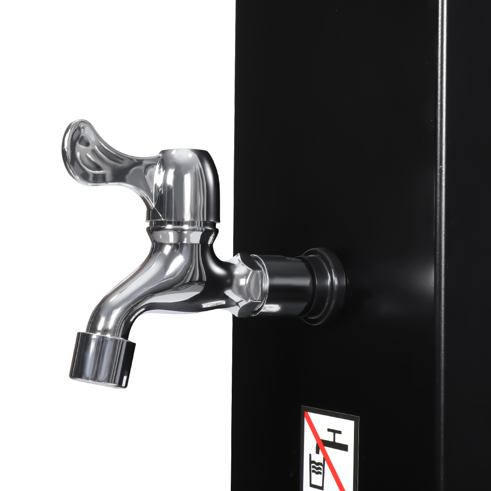 Tämä LY35L04-SS suuritehoinen aurinkosuihku ulkona on suunniteltu tarjoamaan mukava ja kätevä ulkokylpykokemus hyödyntämällä auringonvalon voimaa veden lämmittämiseen noin 60 °C:seen, mikä eliminoi sähkön tarpeen. Suihkuputken täyttäminen on vaivatonta – liitä vain tavallinen puutarhaletku, ja suihku on valmis käyttöön. Käyttömukavuuden lisäämiseksi sisäänrakennettu metalliteline pitää suihkun tarpeet, kuten geelin tai shampoon, helposti ulottuvilla, kun taas huolellisesti sijoitettu tyhjennysreikä pohjassa varmistaa nopean ja tehokkaan vedenpoiston ja estää veden seisomisen. Koko yksikkö kootaan ruuvaamalla osat tiukasti yhteen, mikä varmistaa vakaan rakenteen, ja turvallinen käyttö ulkotiloissa edellyttää asianmukaista maa-ankkurointia. Asennuksen ja käytön helpottamiseksi mukana on kattavat monikieliset ohjeet, joiden ansiosta käyttäjät voivat käyttää sitä eri alueilla.