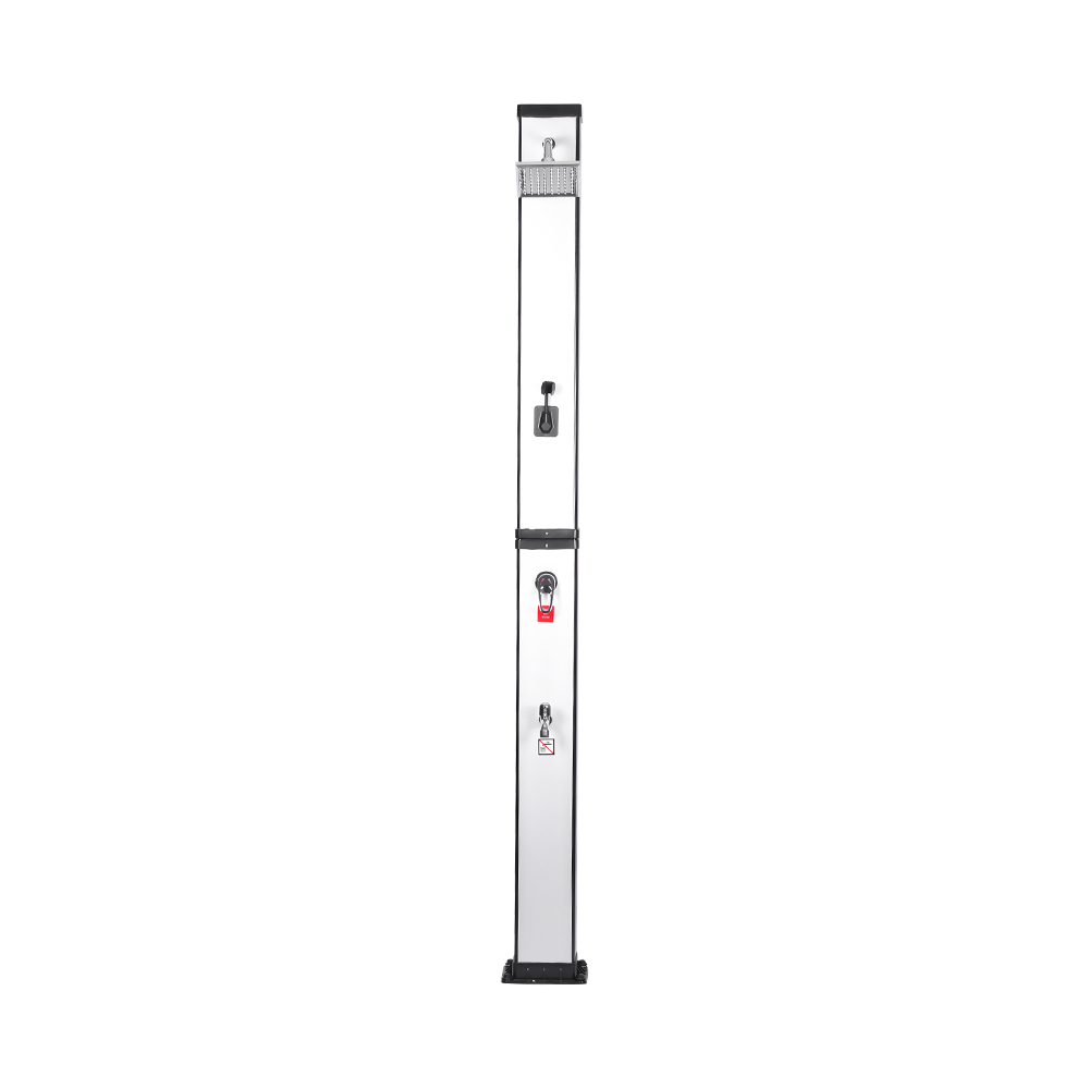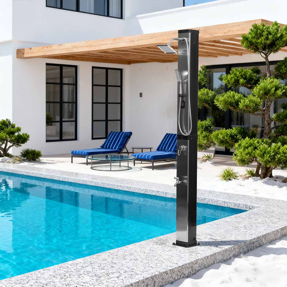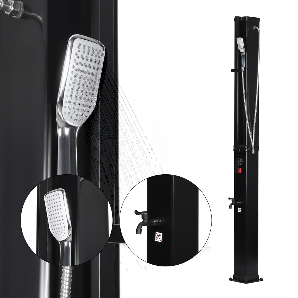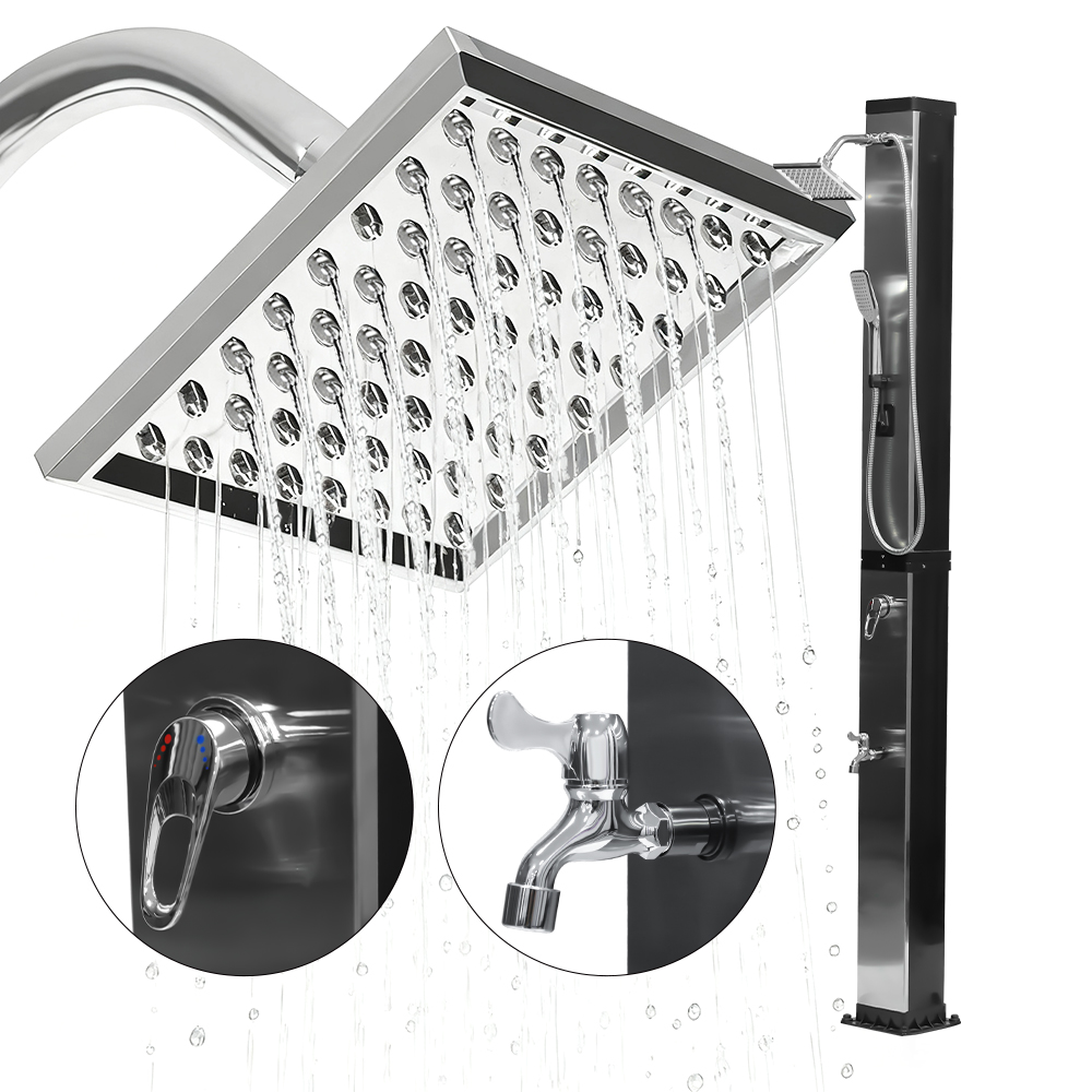 Tämä LY35L07-monitoiminen suurikapasiteettinen aurinkosuihku käyttää vain auringonvaloa veden lämmittämiseen jopa 60 °C:seen, mikä tarjoaa energiaa säästävän ja ympäristöystävällisen tavan nauttia ulkokylpymisestä. Sen täyttäminen on yksinkertaista – liitä vain tavallinen puutarhaletku sisääntuloon, ja suihkuputki on nopeasti käyttövalmis. Sisäänrakennettu metallihylly tarjoaa kätevän paikan suihkugeelin ja muiden välttämättömien tavaroiden säilytykseen, ja pohjassa olevat tyhjennysreiät varmistavat, että vesi virtaa pois tehokkaasti ja pitää alueen kuivana ja siistinä. Tämä monipuolisuutta ajatellen suunniteltu aurinkosuihku sopii täydellisesti erilaisiin tiloihin, olipa kyseessä sitten rannalla, uima-altaalla, loma-asunnossa, hotellissa tai bungalowissa. Sen joustava rakenne mahdollistaa sen sopeutumisen erilaisiin ympäristöihin.