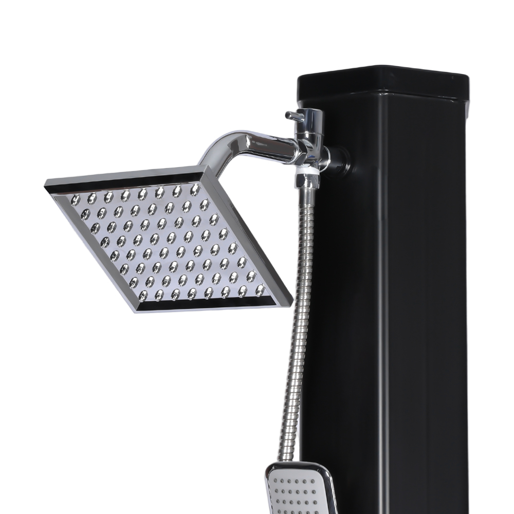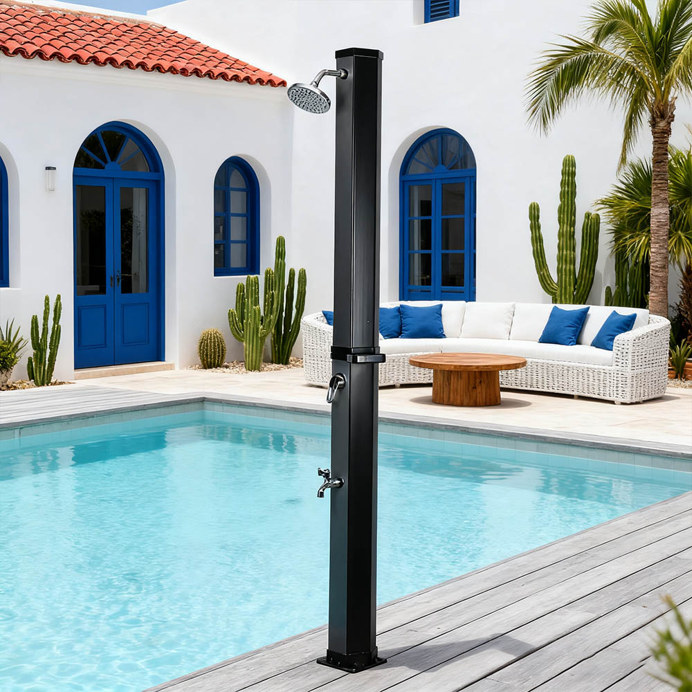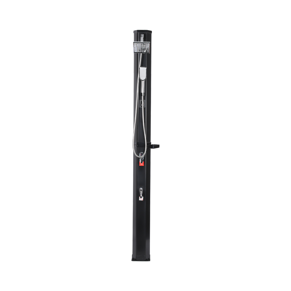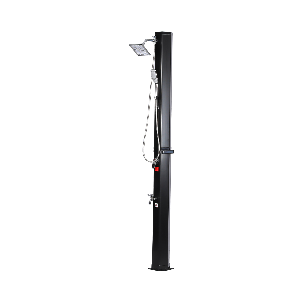 Tämä LY35L09-ulkokäyttöinen aurinkosuihku, jossa on helppo kuljettaa ja kuljettaa, on suunniteltu monipuoliseen käyttöön ja tarjoaa mukavan kuuman suihkun puutarhassa, uima-altaalla tai retkeilyn aikana. Se ei ole riippuvainen ulkoisesta energialähteestä ja nauttii luonnollisen auringonvalon lämmityksen mukavuudesta. Siinä on tavallinen puutarhaletkuliitäntä nopeaa ja helppoa täyttämistä varten, ja tyhjennystulppa mahdollistaa suihkuputken helpon tyhjennyksen ennen talvea, mikä estää kerääntyneen veden aiheuttamat vauriot. Sen irrotettava muotoilu mahdollistaa nopean purkamisen ja kompaktin säilytyksen, mikä tekee siitä ihanteellisen tilaa säästävään säilytykseen, kun sitä ei käytetä. Se on myös helppo kuljettaa ja kuljettaa, joten voit nauttia ulkosuihkun mukavuudesta milloin ja missä tahansa.