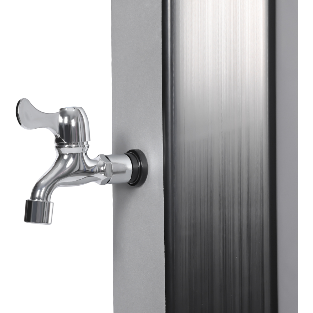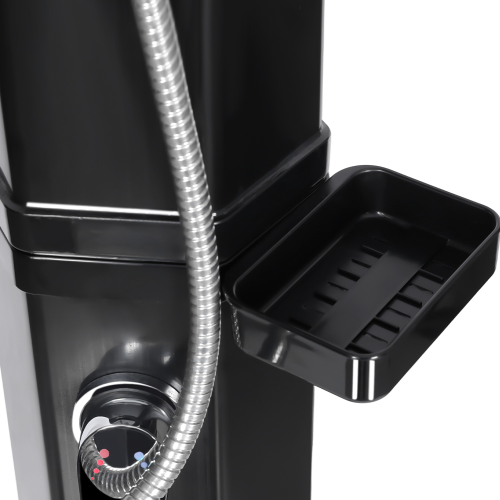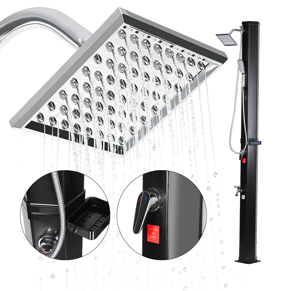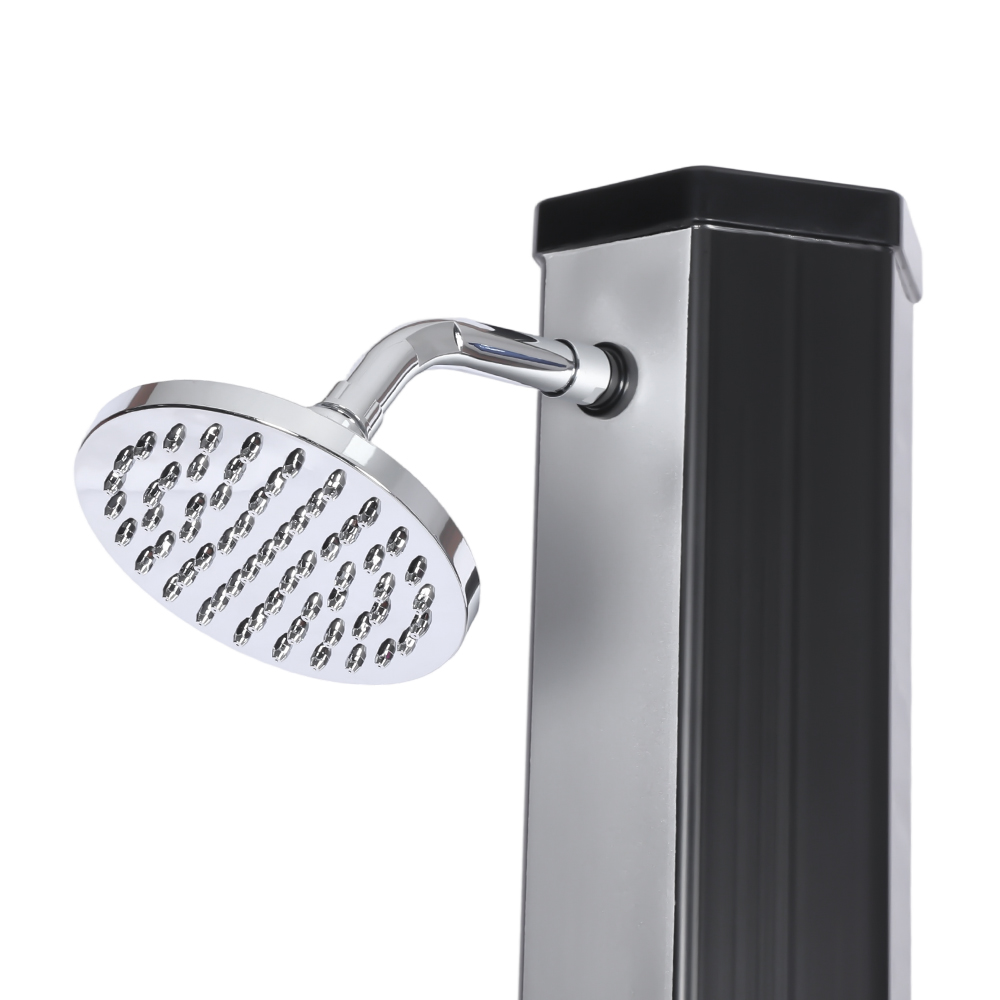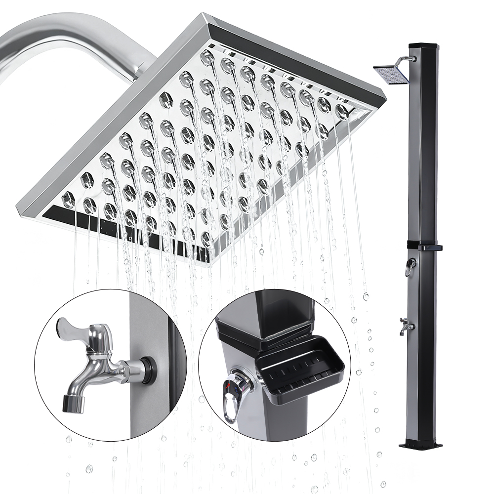 Tämä LY35L09-ulkokäyttöinen aurinkosuihku, jossa on helppo kuljettaa ja kuljettaa, on suunniteltu monipuoliseen käyttöön ja tarjoaa mukavan kuuman suihkun puutarhassa, uima-altaalla tai retkeilyn aikana. Se ei ole riippuvainen ulkoisesta energialähteestä ja nauttii luonnollisen auringonvalon lämmityksen mukavuudesta. Siinä on tavallinen puutarhaletkuliitäntä nopeaa ja helppoa täyttämistä varten, ja tyhjennystulppa mahdollistaa suihkuputken helpon tyhjennyksen ennen talvea, mikä estää kerääntyneen veden aiheuttamat vauriot. Sen irrotettava muotoilu mahdollistaa nopean purkamisen ja kompaktin säilytyksen, mikä tekee siitä ihanteellisen tilaa säästävään säilytykseen, kun sitä ei käytetä. Se on myös helppo kuljettaa ja kuljettaa, joten voit nauttia ulkosuihkun mukavuudesta milloin ja missä tahansa.